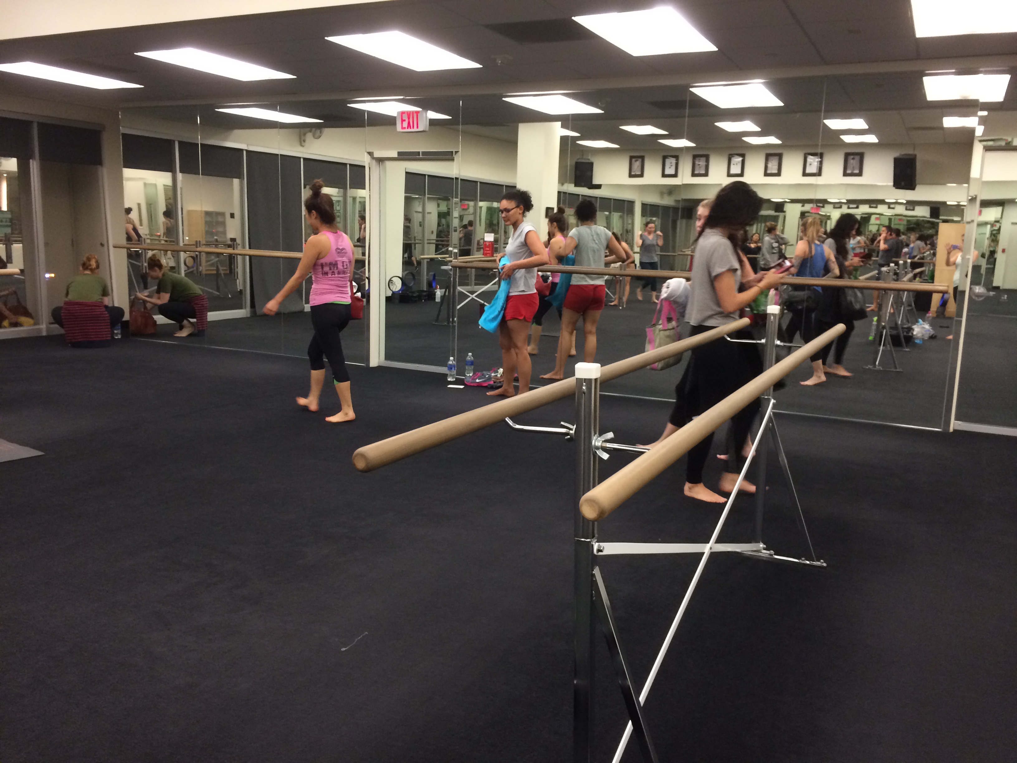 After 8 classes I still have some trouble with the jargon they use in the class. I always find myself sneaking peaks at the other girls when the instructor is yelling things like flat back over, relevé, and plié. However, the instructor was really good about discreetly correcting any positions. He also gave out plenty of compliments, which always feels great.