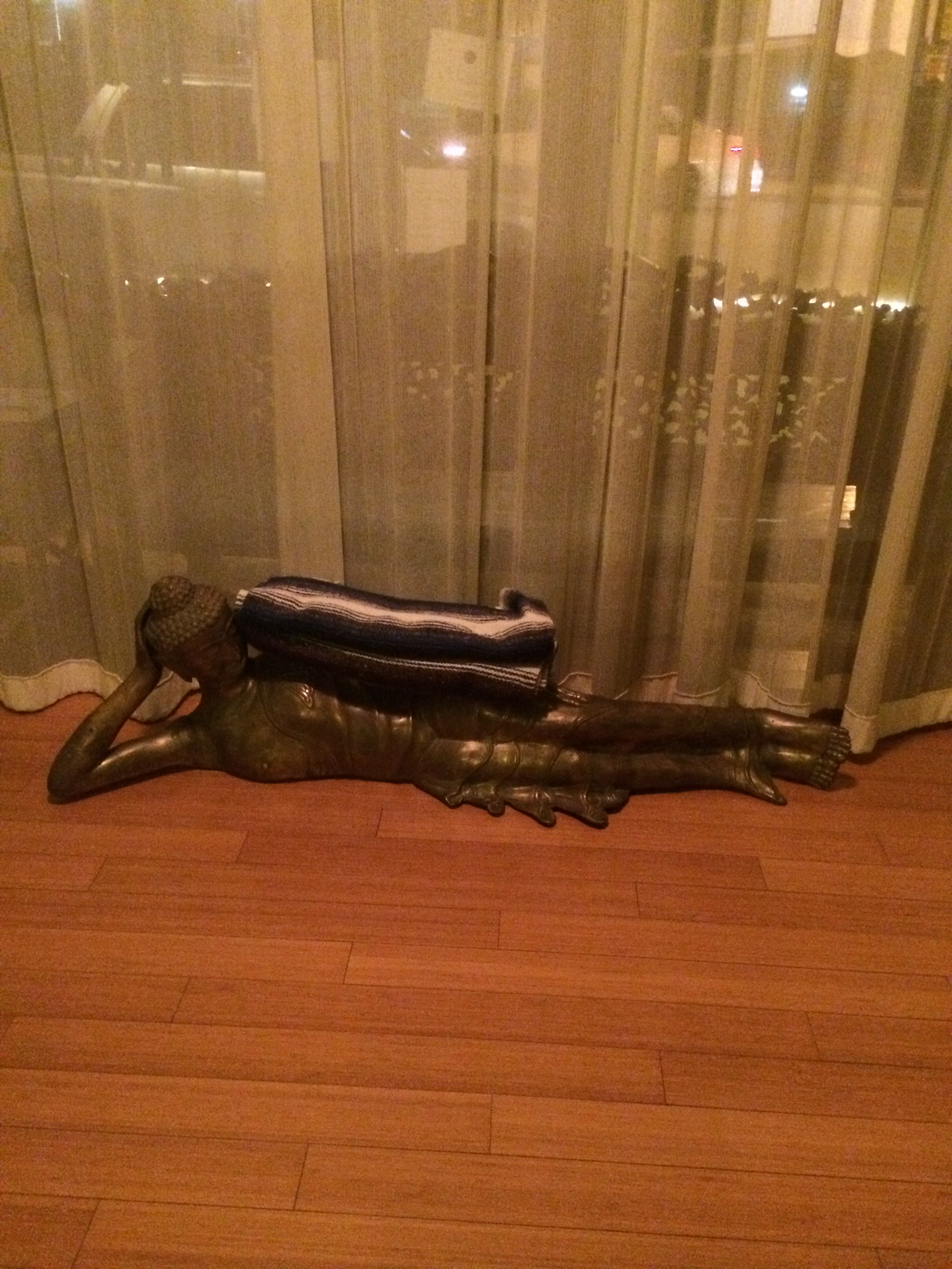 I signed in and let them know that I was new to yoga. I was the first one there so I set my mat up near the front and took a seat. The room was clean and welcoming, with a few candles lining the walls. As other people started coming in, I learned by example and got a blanket, two blocks, and a strap.