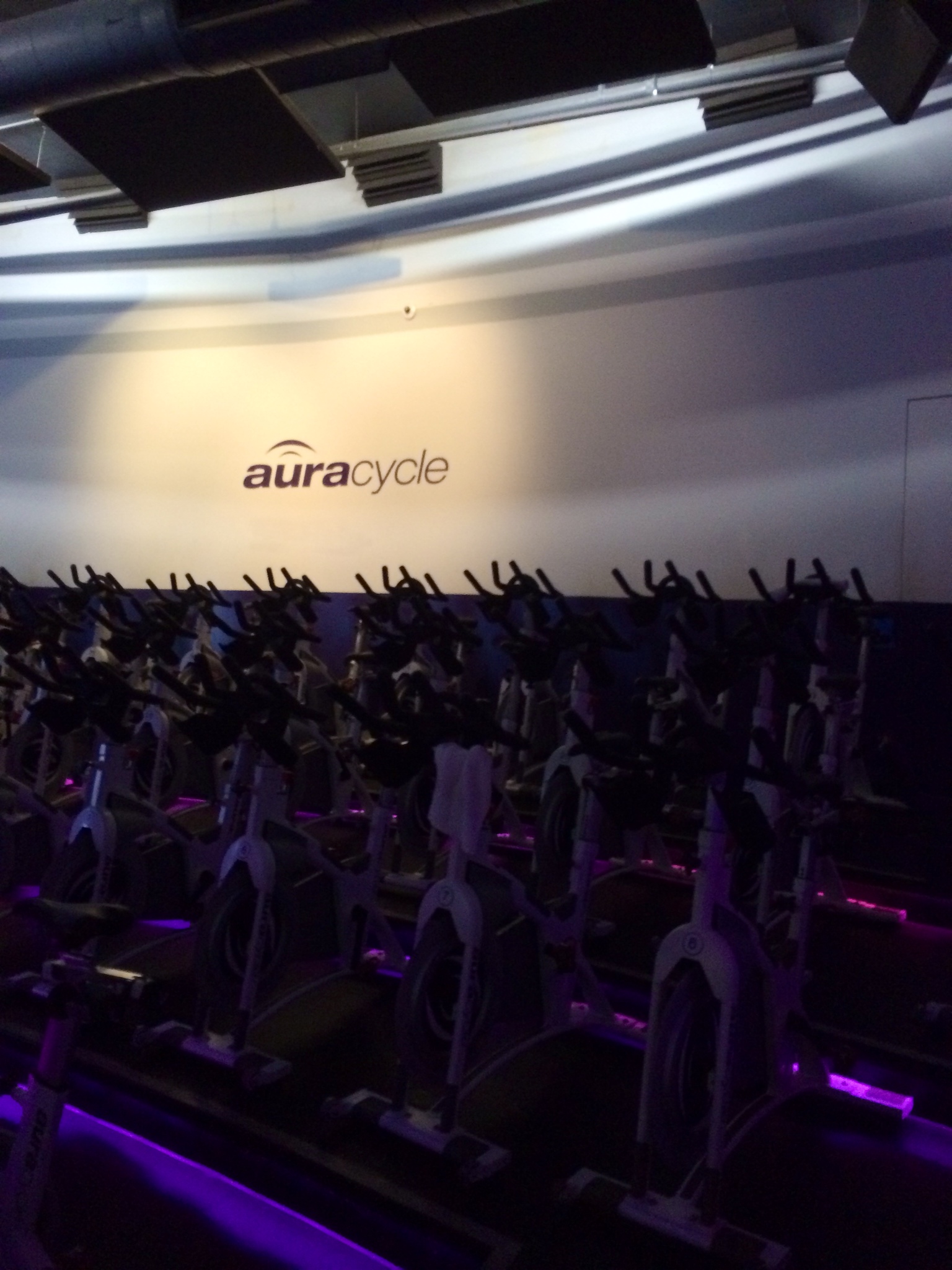 Just as I hoped, the streets were absolutely empty, a Thanksgiving miracle! I got there in no time and found a spot in their parking garage. Aura Cycle validates for 90 minutes, but today there wasn’t even a parking attendant due to the holiday. When I walked in the studio, I told them it was my first time and they had me create an account. They handed me a pair of shoes (first pair free, then $3/class) and a water bottle (also free…pretty sure this was an accident). I put on the shoes, placed my things in a locker, and headed to my assigned bike where I found a towel waiting for me.