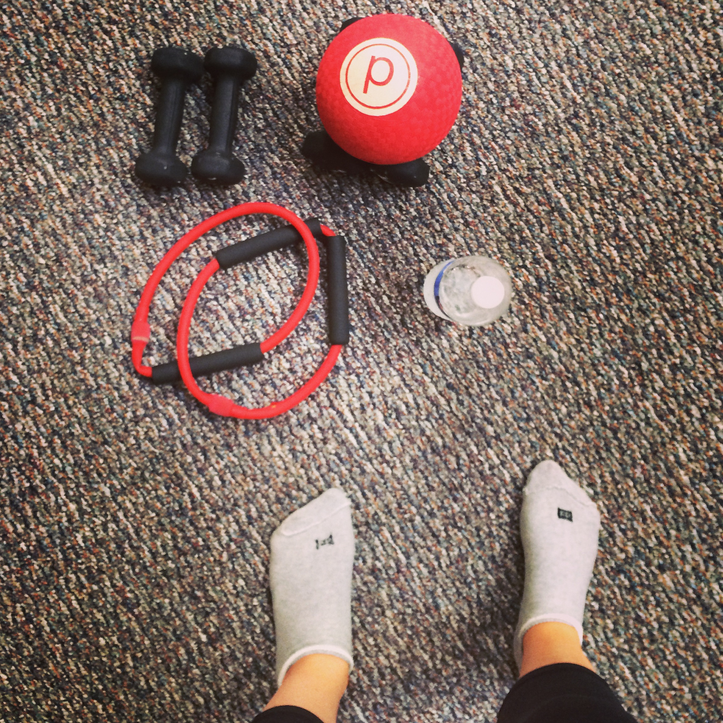 Pure Barre is located on Sunset Blvd in Hollywood. They have some tandem parking in the back alley and metered spots on the side streets. Make sure you check the signs if you park on Sunset! After you check in, you can fill up your water bottle to the left of the front desk and place your things in the cubbies inside of the studio. You will need to put on socks and grab a double tube, ball, and set of light and heavy weights.