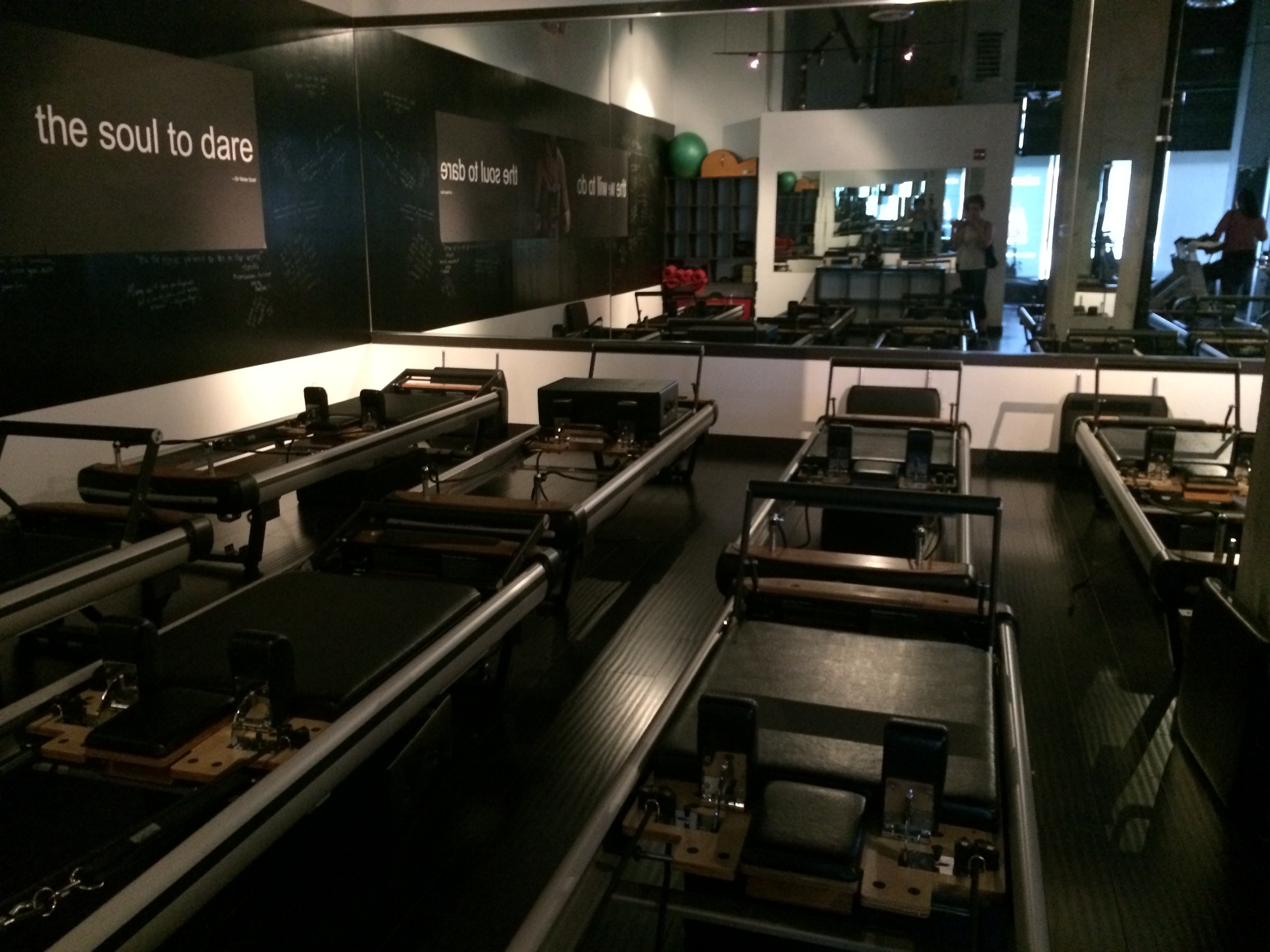 - Get a reformer in the front near the mirror. The class went quickly so I had to look around and copy classmates pretty often. Also it was harder to hear in the back near the speaker.