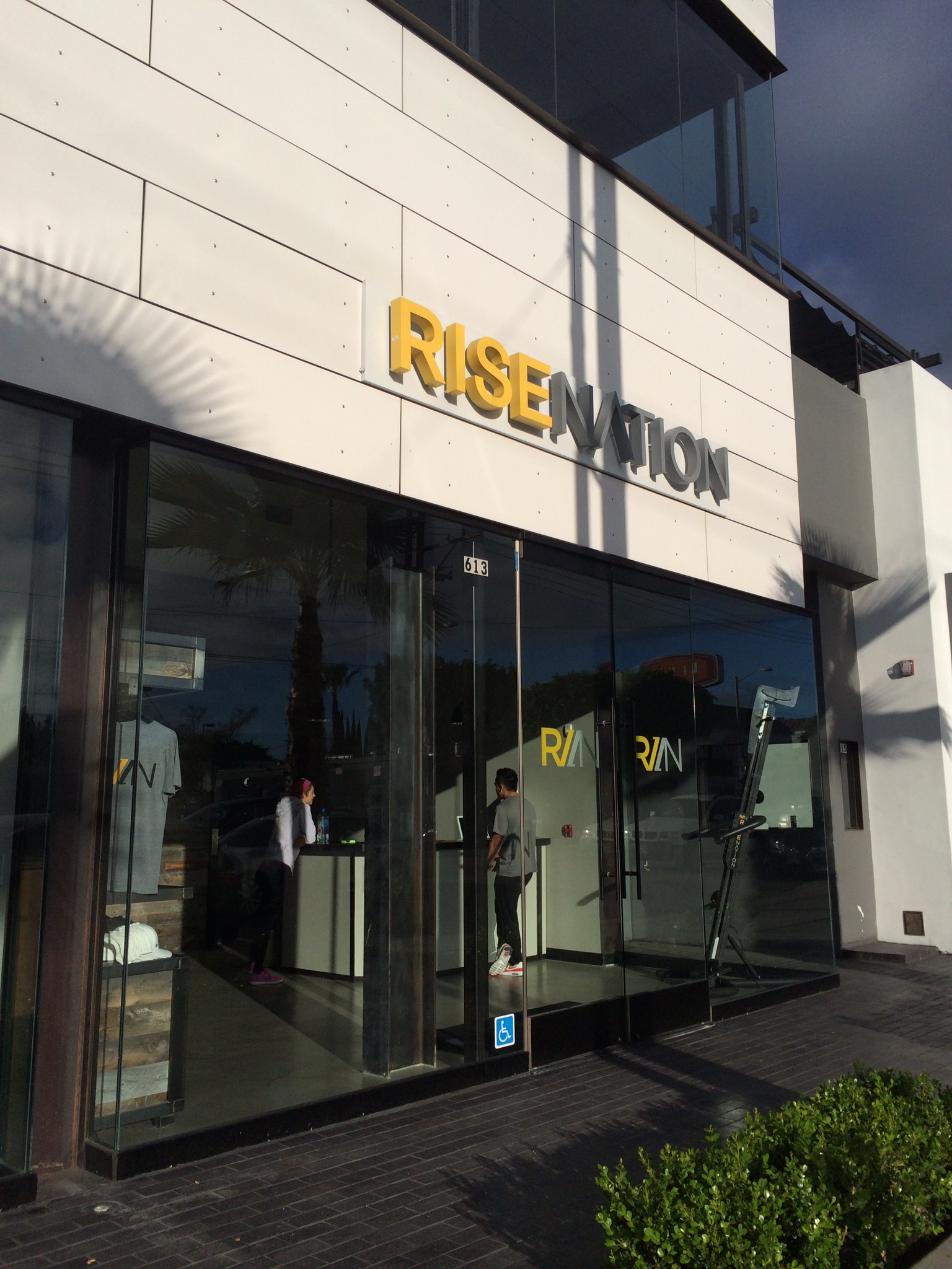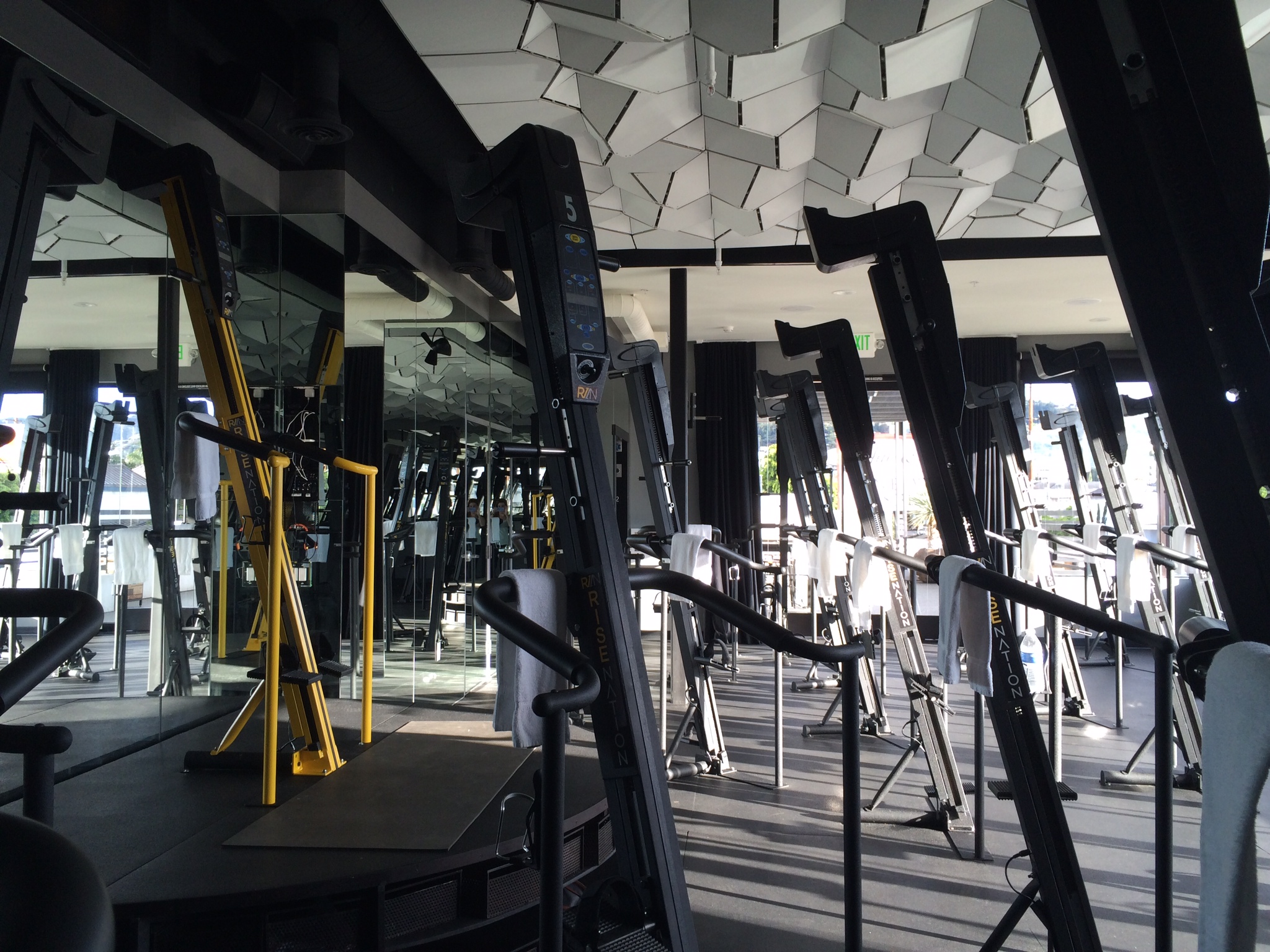Rise Nation is on the corner of La Cienega and Melrose in the same building as Cycle House and Alfred’s in the Alley (I can always use those as landmarks). They validate valet in the garage for $5 or you can snag a street spot. I found one right out front and since the class is only 30 minutes, you don’t have to spend a fortune on the meter. I walked in, signed a waiver, and met Alex, the instructor, and Nick, the manager. Nick explained the versa climbing machines and led me upstairs where he set up the handles on my climber while I filled up my bottle with alkaline water.