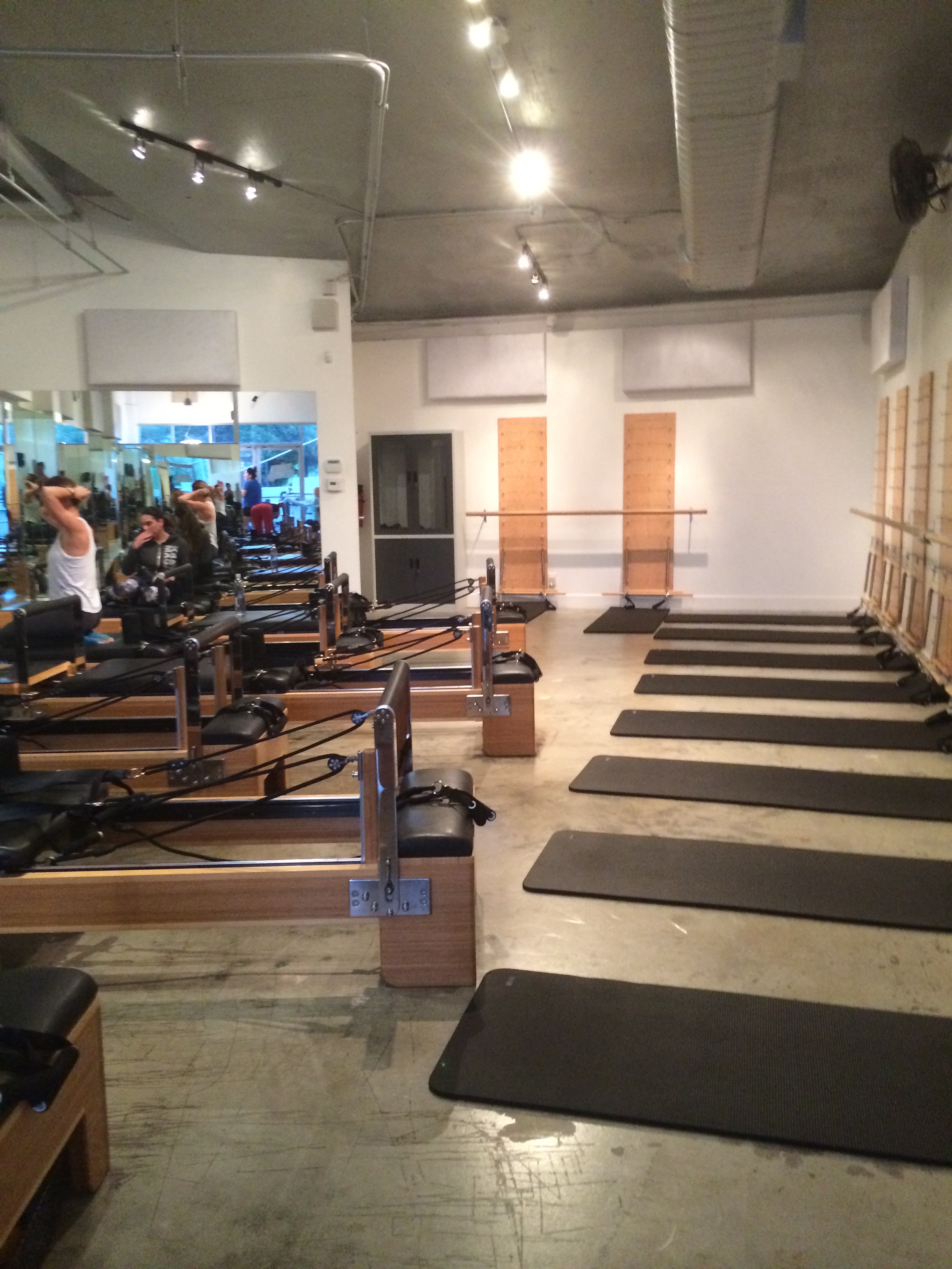 The studio is located in the right corner of a shopping center with parking in front, on top, and on the side streets. It’s a one room studio with 10 reformers, 10 spring boards, lots of mirrors, and a bathroom/changing room. There is a place to fill up your water bottle and each spot is already set up with weights, a mat, a ball, and a magic circle. After signing the waiver I took a seat on a reformer.