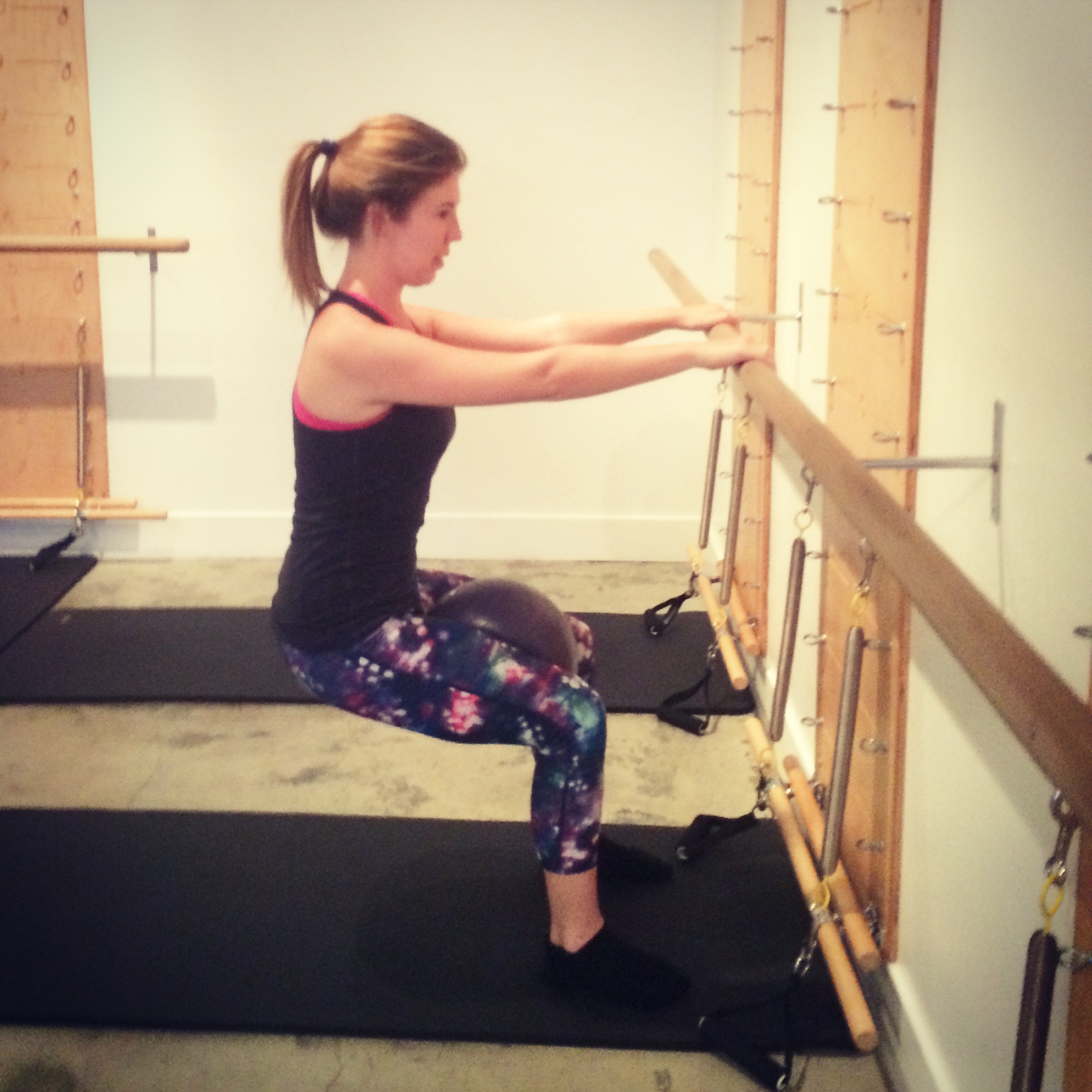 This class was broken up into three parts. For the first 30 minutes we worked our full body on the reformer. This was NOT for beginners…I couldn’t feel my arms and legs by the end! We also did a lot of balancing and stabilizing so if the movement of the carriage is new to you, beware. Most of the exercises were also done while holding 2-pound weights. The hardest for me was lunging with one leg on the platform and one moving in and out on the reformer simultaneously doing bicep curls.