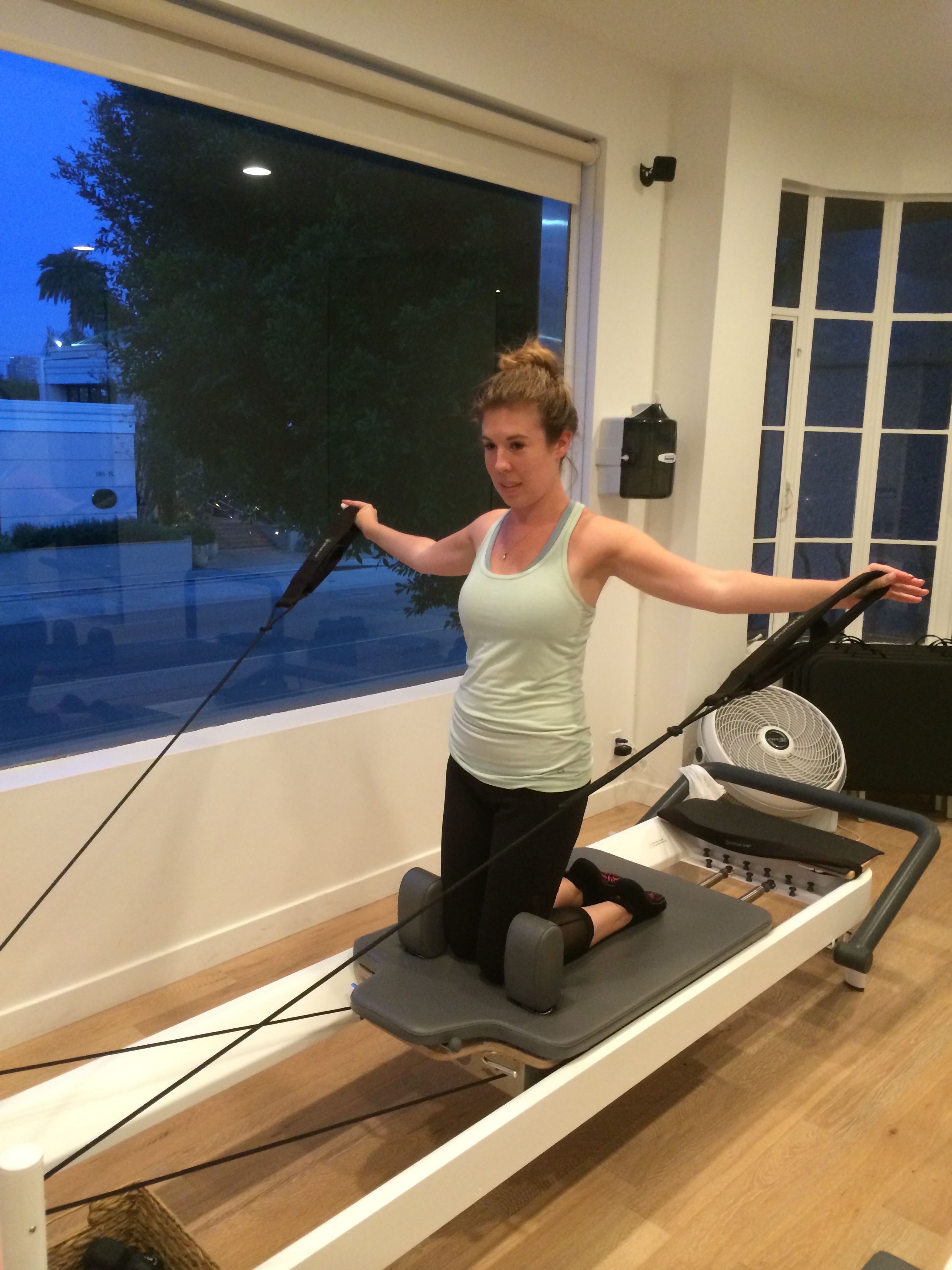 Parking is terrible so factor in at least 15 minutes to look around. There are some metered spots on La Cienega and a two-hour free city lot on La Cienega and Gregory Way (I can’t speak to this lot but know it’s 2 long blocks away). The area also has a ton of permit restrictions. The studio is on the second floor of Scratch Bar and the door is marked Eden Pilates. I walked upstairs, signed a waiver, and hopped on a reformer. The studio must be a converted apartment…that I would die to have lived in…gorgeous floors, spacious, really well decorated.