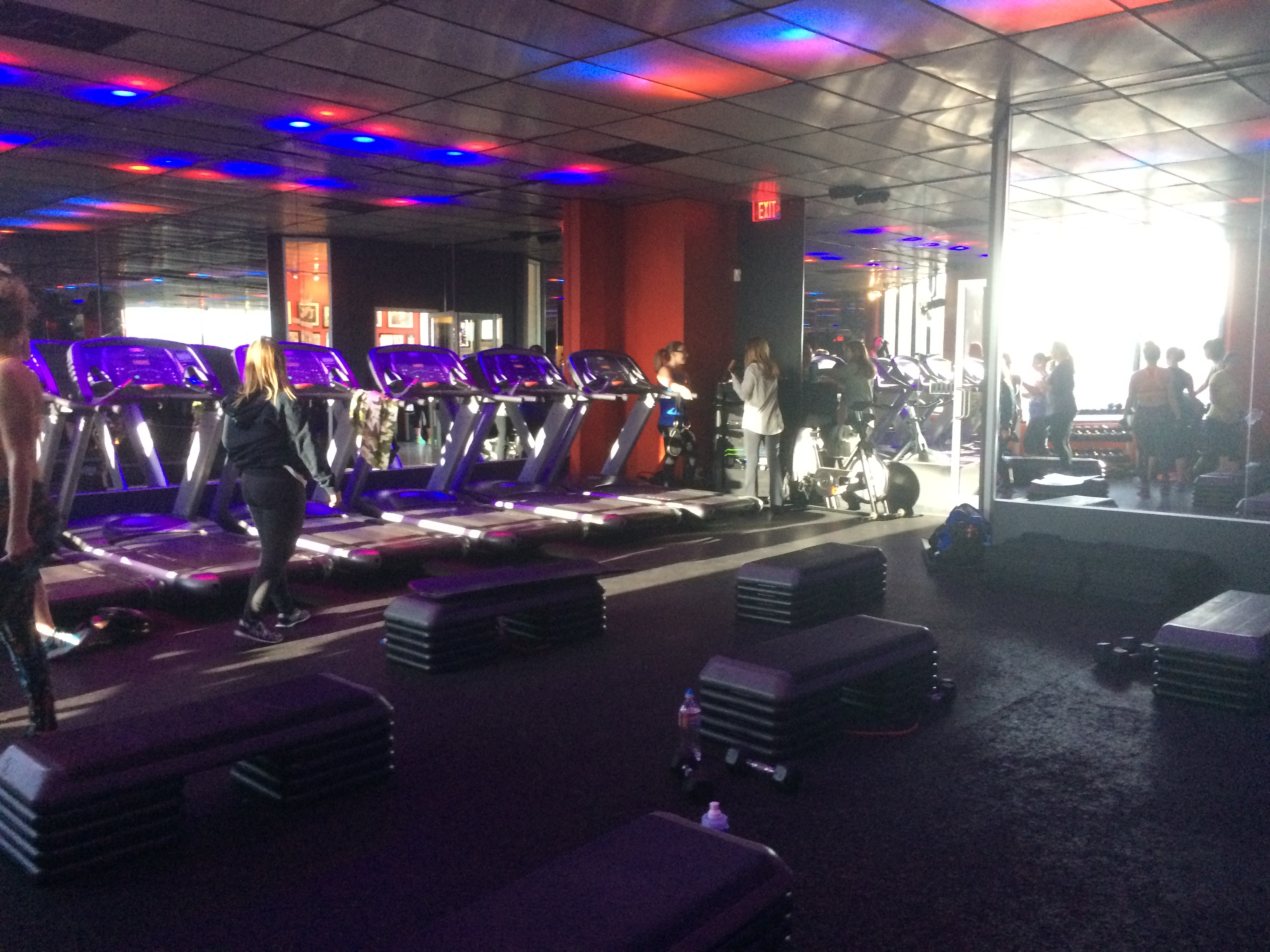 While all of the parking in the ground level lot is 20-minute, there is an underground garage beneath the entire shopping center (entrance is in the corner). I found a spot easily and took the elevator to the second level. The entrance to the studio is across a little bridge over the lot. I checked in, signed my waiver, and filled up my water bottle. The studio has two rooms—one for their signature treadmill and tone classes and the other for spin. While waiting in the lobby until the previous class got out, I started to get a bit nervous seeing everyone come in with wraps and gloves. Being a newbie to boxing, one of my biggest fears is to be the only beginner.