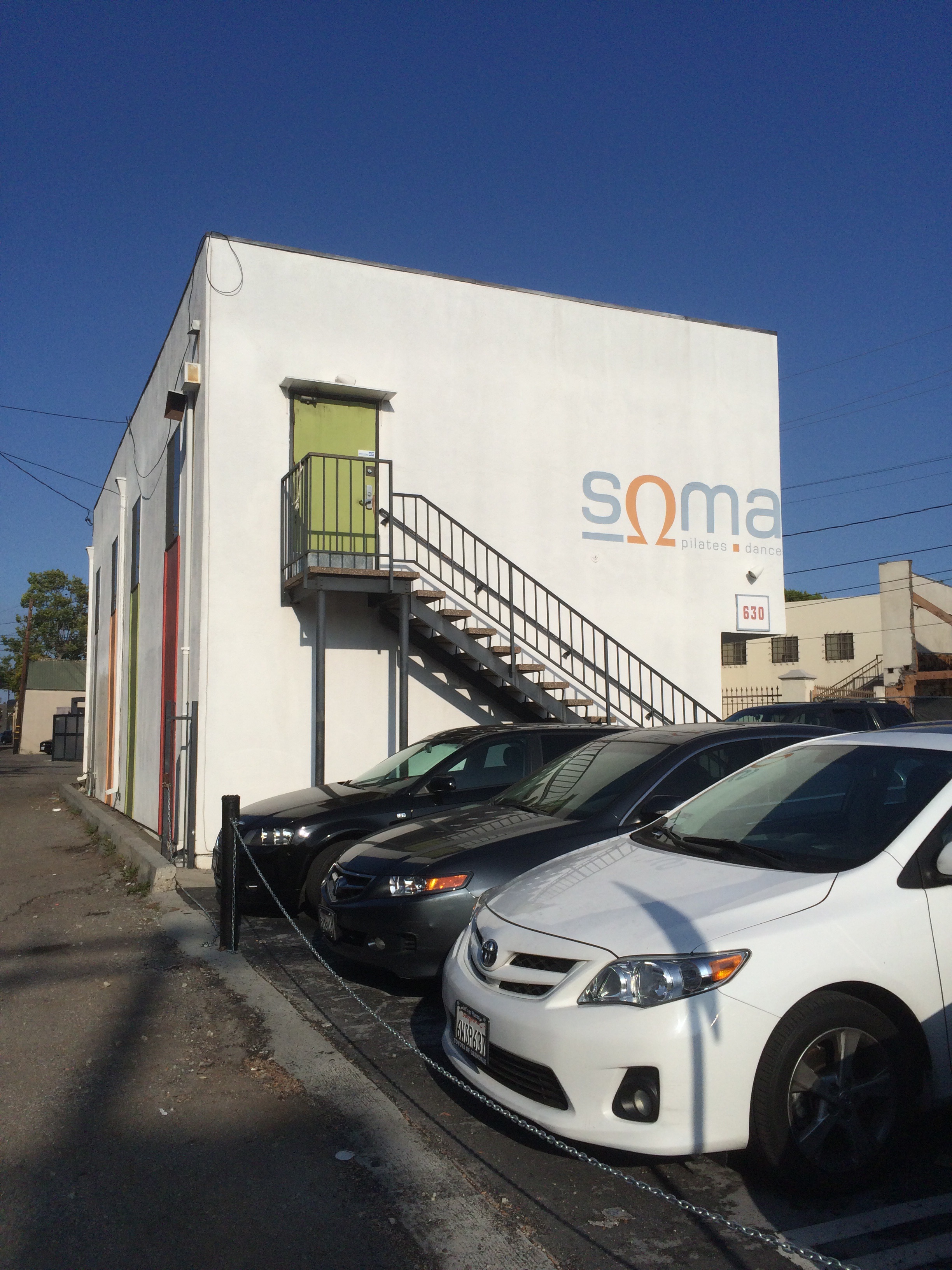 Give yourself some time when arriving to Studio Soma. Not only is there no designated parking lot, but the studio is also in a very inconspicuous place with no view of it from the main streets. Soma is located in the middle of the triangle made by La Cienega, Melrose Ave, and Melrose Place—on Melrose Alley. I parked at a meter in front of Alfred Coffee (the main one on Melrose Pl) for $1/hour. It’s best to walk down the alley off of La Cienega (follow the Cycle House parking signs) or off of Melrose. When I entered Soma I was in a room full of reformers where private classes were taking place. I signed in, filled out a waiver, and Thalia—the instructor and studio owner—showed me how to get upstairs where I grabbed a mat and bosu ball.
