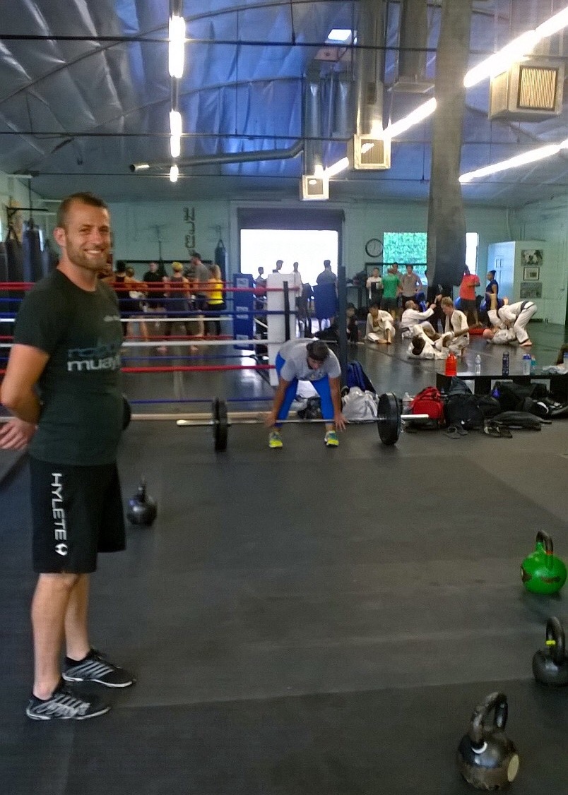 Robot Fight and Fitness has one of the largest mat spaces in Los Angeles (3000 sq. ft.) and can have up to four classes going at a time. The facility also includes an Olympic lifting area and a ring for practice matches. While most people look to ‘Robot’ for MMA, Muay Thai, and BJJ training (it’s a great studio for beginners and the instructors are amazing), I think I’ve found my home at Robot Fit classes. Robot Fit is a strength and conditioning program, the studio’s alterative to Crossfit without the injuries associated with that style of workout.