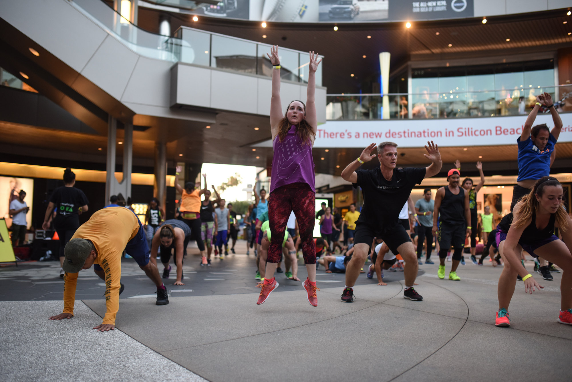 Nike Training Club (NTC for short) varies its routine week to week. I would typically describe it as a heart-pumping, full-body, cardio-infused workout. After being welcomed by our trainers, we headed to the center of Santa Monica Place and started to stretch (let’s be honest I use those first few moments to do some window shopping). Then it’s full throttle for the next 55 minutes. Jump squats, push-ups, and burpees are the norm.