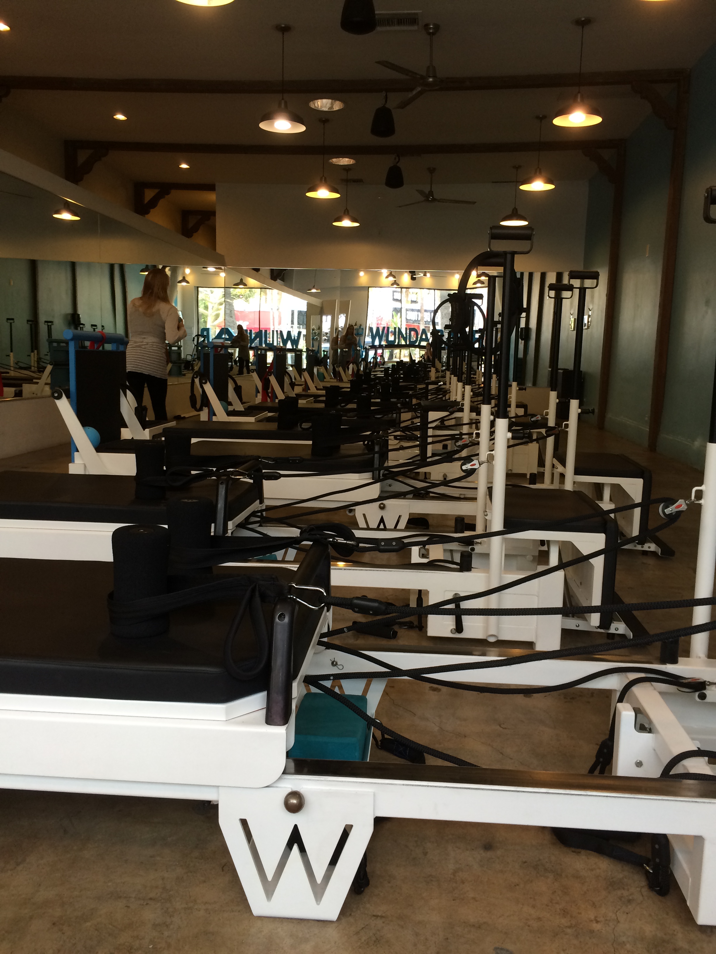 I’ve driven by WundaBar many times on Ventura and noticed the bright blue walls inside. After looking it up, I discovered that the WundaBar is a pilates studio that patented its own WundaFormer in order to combine the signature workouts of the Pilates reformer, chair, and jump board, and a ballet bar all in one. The fact that each sweat is only 45 minutes was also a major perk so I signed up for my first free class.