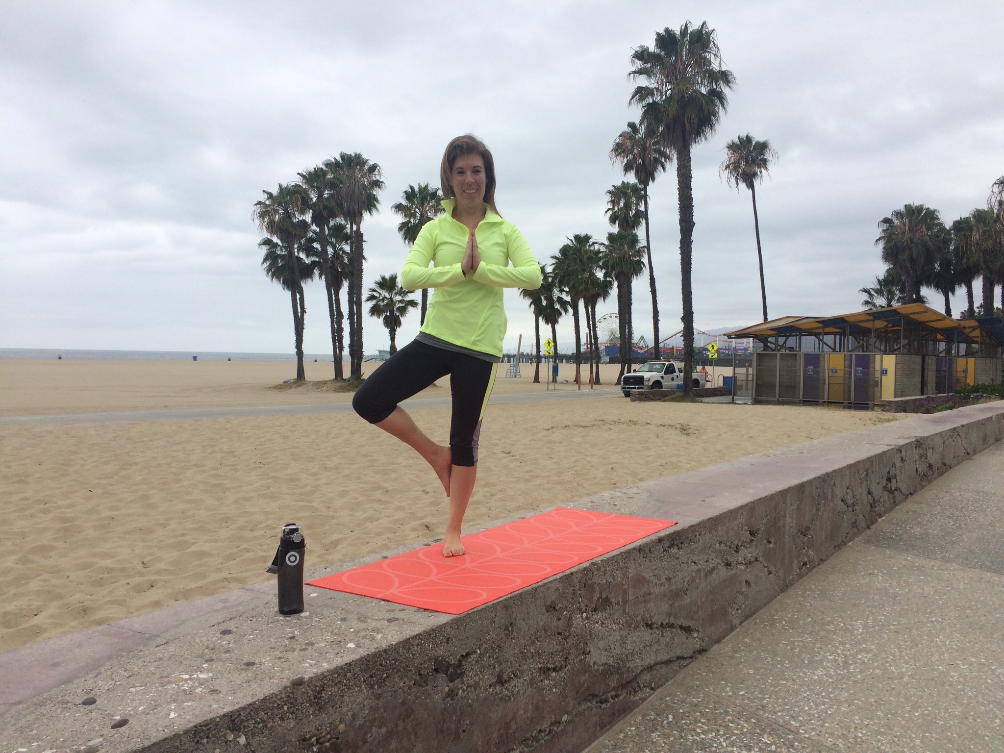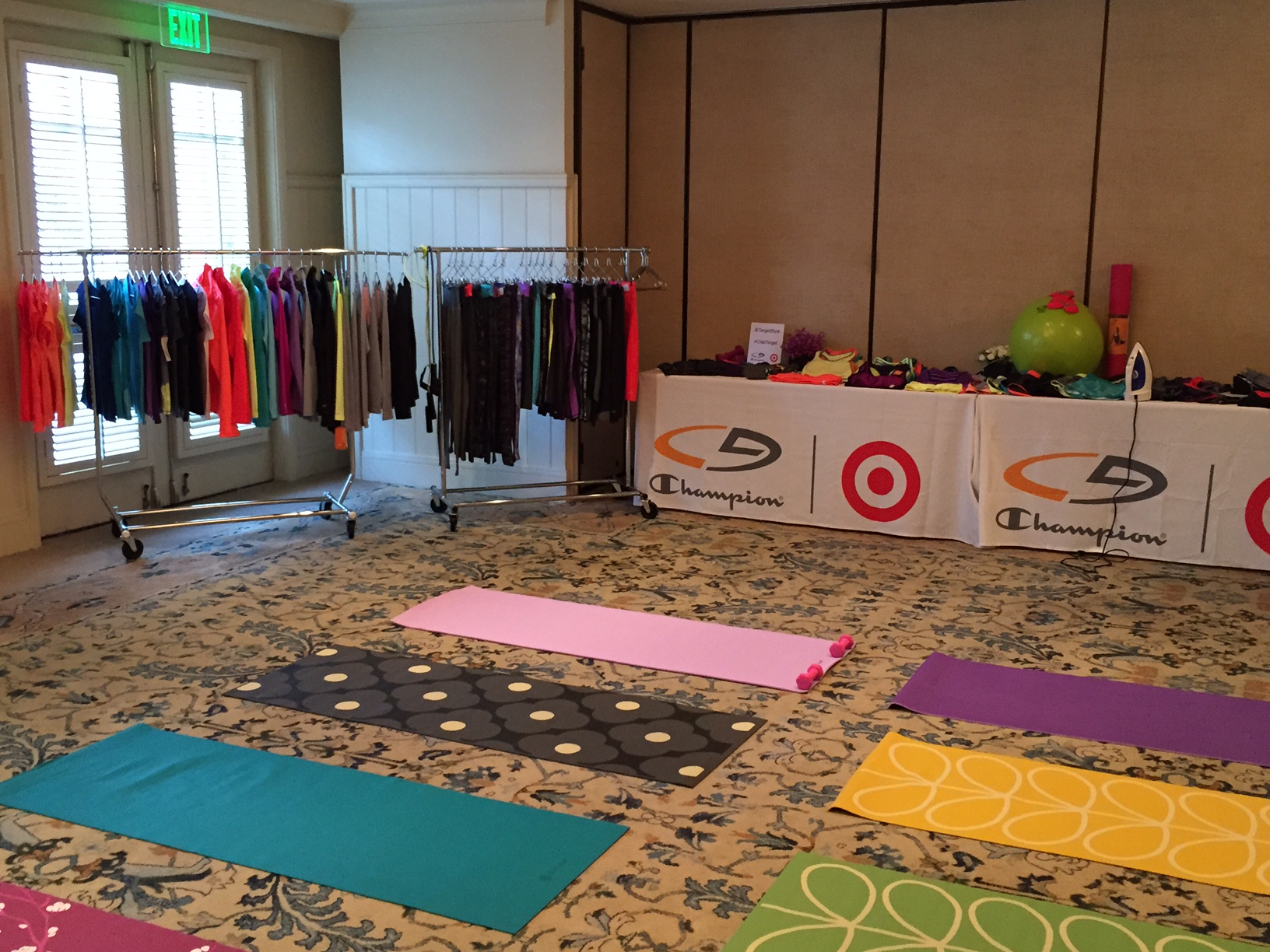 Once I arrived and grabbed some coffee in the lobby, I headed down to the Promenade room to find bright yoga mats and equally bright workout gear. The morning started with a 45-minute class where Kristen led us through a series of sun salutations, warrior poses, and some mat Pilate’s moves. Afterwards, we were free to help ourselves to smoothies, granola, and exercise clothes (every girl’s DREAM). There were also masseuses available for 15 minute massages—perfect after a workout but before heading to actual work. Of course, my friend and I had to sneak away for pictures with some of my new gear by the beach!